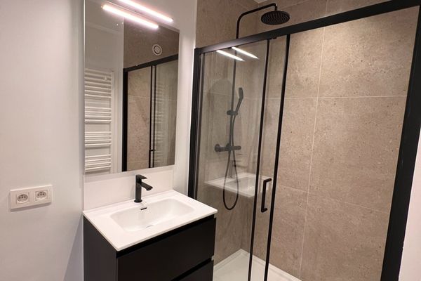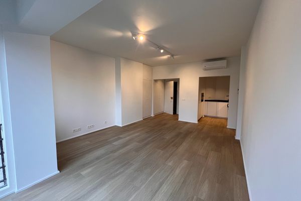 Etangs d'Ixelles: Magnifique appartement au 1er étage entièrement rénové (1ere occupation) comprenant un grand et lumineux séjour, une cuisine full équipée (taque, four, lave-vaisselle, frigo), une chambre avec un balcon, une toilette séparée et une salle de douche avec emplacement pour la machine à laver le linge. Provisions de charges: 105 euros/mois (communs et eau) A voir!