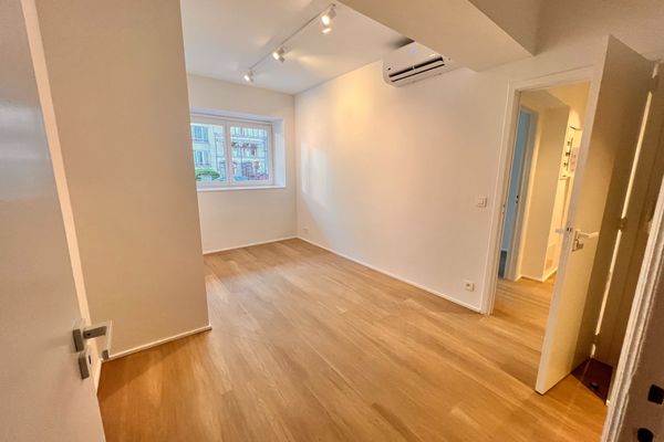 Etangs d'Ixelles: Magnifique appartement au rez entièrement rénové (1ere occupation) comprenant un  lumineux séjour, une cuisine full équipée (taque, four, lave-vaisselle, frigo), une chambre avec un balcon, une toilette séparée et une salle de douche avec emplacement pour la machine à laver le linge. Provisions de charges:  105 euros/mois (communs et eau) .  A voir!