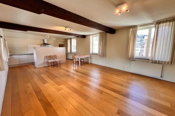 A quelques pas de la Grand Place et de la gare centrale ,magnifique appartement de 90 m2 situé au 2eme étage comprenant : 1 grand living, 1 cuisine full équipée, 1 chambre avec placards, 1 salle de bain, parquet, 1 cave. Provisions de charges: 150eur/m (communs, chauffage, eau chaude) A voir! Libre le 01/05/2026